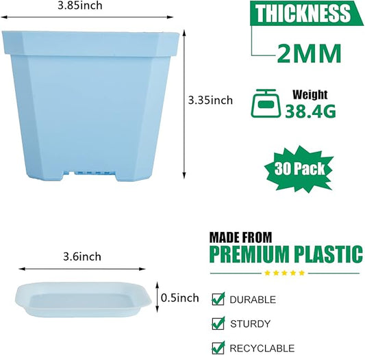 foxany 4" Nursery Pot, 30 Pcs Thick Plastic Square Planting Pots, Plant Seedling Pots, Seed Starting Pots with 30 Saucers - Multi