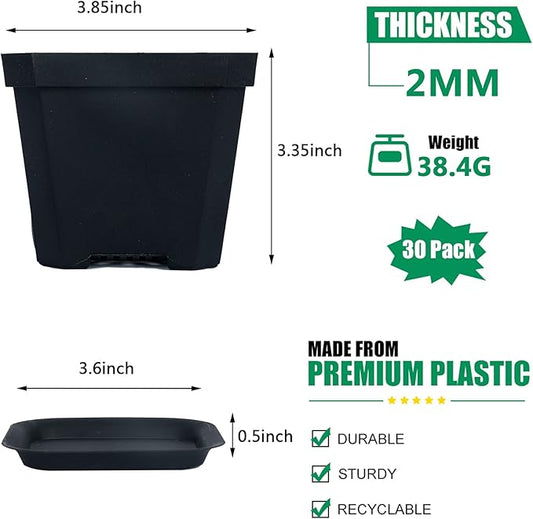 foxany 4" Plastic Nursery Pot, 30 Pcs Thick Plastic Square Planting Pots, Plant Seedling Pots, Seed Starting Pots - Black