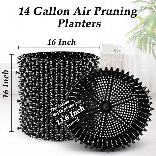 14 Gallon Air Pruning Planters, Plastic Pots for Plants, Large Plant Pots, Fruit Vegetable Garden Self-Planting Planters, Size 16"x16", Black, 5P