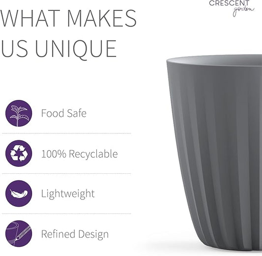 Crescent Garden Pleat Modern Decorative Planter, Indoor/Outdoor Pot, Resin Planter with Drain Hole - 15" W x 15" H (Ash)