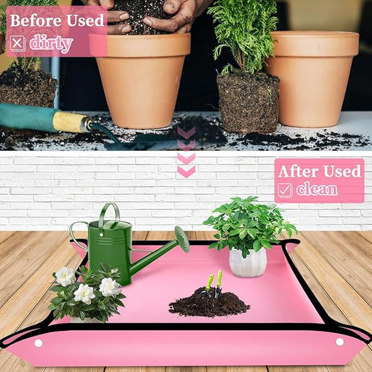 SupKing Repotting Mat for Indoor Plant Transplanting 29.5"x 29.5" Pink Garden Mat for Plant Lovers Oxford Fabric Portable Potting Tray for Gardening Mess Control