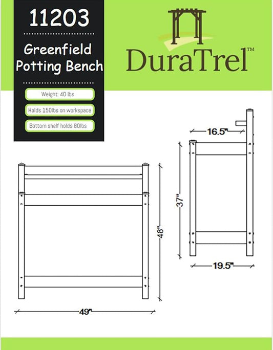 DuraTrel Greenfield PVC Vinyl Indoor Outdoor Table Potting Bench Station with Shelf for Plant Accessories & Gardening Supplies Storage, White