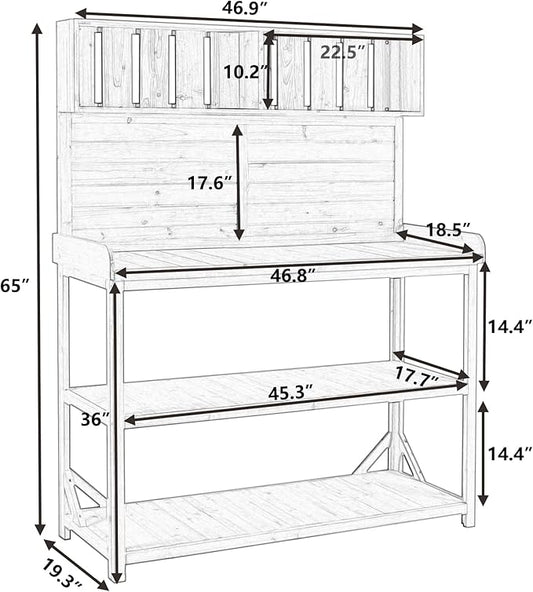 Create your own potting station with functional benches and tables. Designed to keep your tools, soil, and planters organized while you work.