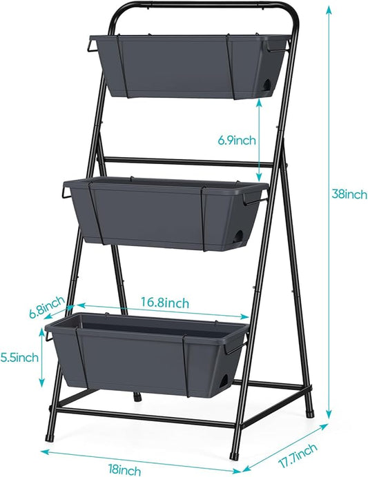Vertical Garden Planter 3 Tier Raised Garden Bed Herb Planter Outdoor Standing Garden Planter Box with Drainage Holes Removable Tray for Patio Balcony Porch Grey
