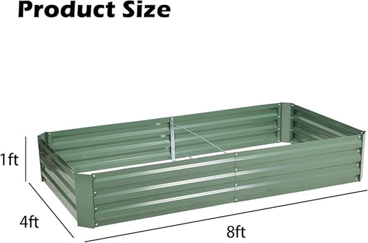 Aoodor 8 x 4 x 1 ft Outdoor Raised Garden Bed, Reinforced Galvanized Steel Planter Box for Vegetables, Herbs, and Flowers
