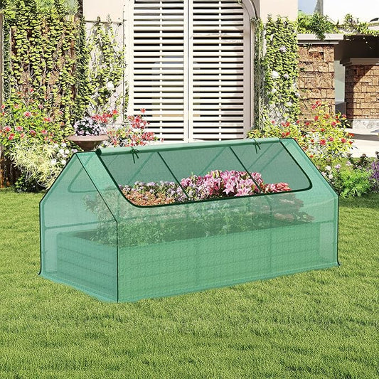 Aoodor 6 x 3 x 3 ft Raised Garden Bed with Mini Greenhouse Kit, Metal Planter Box with 2 Roll-Up Zipper Doors for Vegetables, Herbs, and Flowers