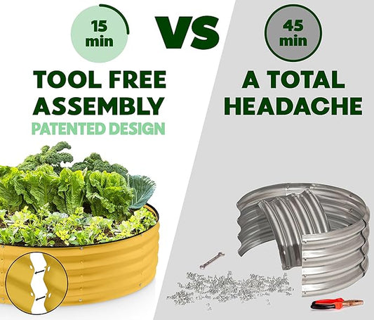 Round Galvanized Raised Garden Bed // 4×4×1 ft (2-Pack) Galvanized Raised Garden Beds Outdoor for Gardening, Vegetables, Flowers // Patented Tool-Free Design Round Planter (Yellow)
