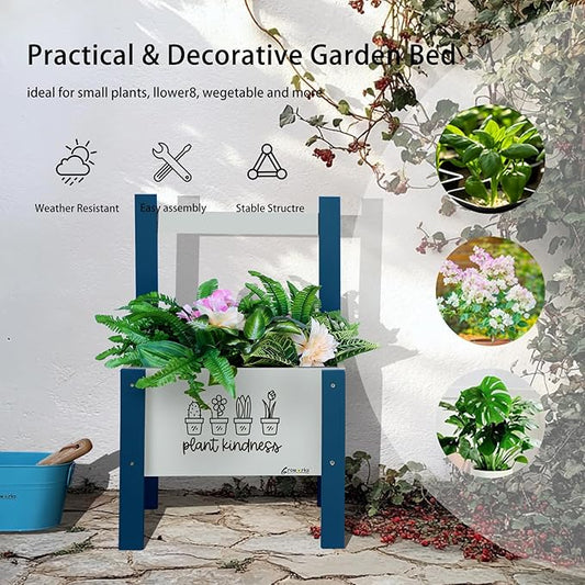 Raised Garden Bed with Trellis Elevated Planter Box with Legs, Drainage Holes for Outdoor Garden, Patio, Natural Wood 17.7”L x 16.1”W x27.6”H (Blue)