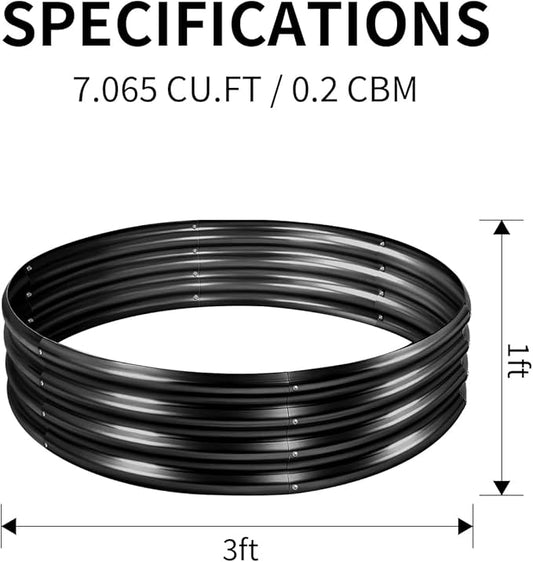 Land Guard 3×3×1ft Galvanized Raised Garden Bed Kit, Round Galvanized Planter Raised Garden Boxes Outdoor, Large Metal Raised Garden Beds for Vegetables, Grey