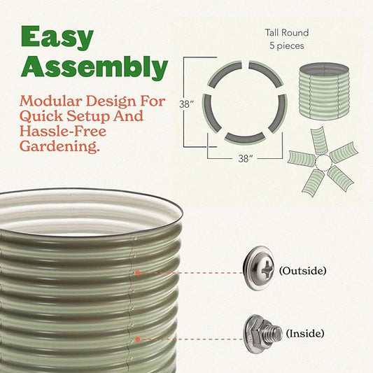 Epic Gardening 5-in-1 Modular Galvanized Raised Garden Bed Kit, 15" Tall Metal Planter Box, Durable Aluzinc Steel Raised Garden Bed Outdoor for Vegetables, Herbs, Flowers & Fruits - Round - Mist Green