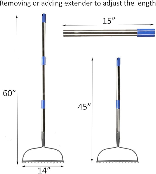 Garden Rake, 5 FT Metal Rake for Lawns Level Head Rakes with Stainless Steel Handle for Loosening Soil