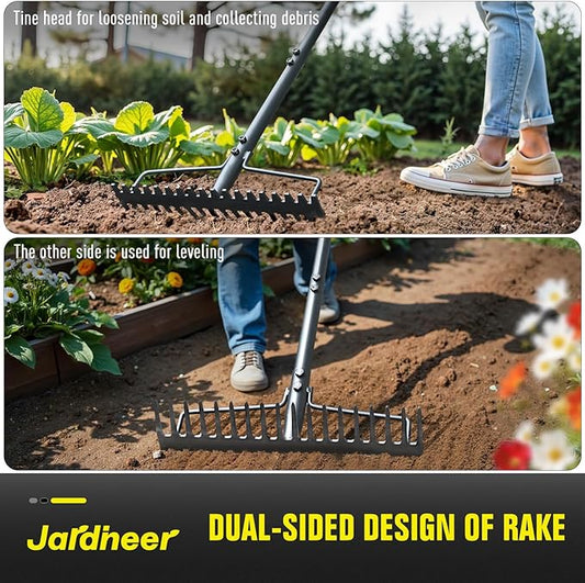 Jardineer Bow Rake Heavy Duty, Long Handle Metal Rakes for Gravel, Rocks, Lawns Leaves, Soil Leveling, Landscaping, Garden Rake with 18 Steel Tines (59 Inches)