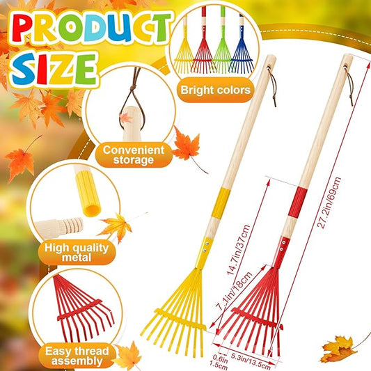 Suclain 4 Pcs Mini Rakes with Hardwood Handle Small Rake for Gardening Yard Tools Multicolor 28'' Mini Rake for Leaves Lightweight for Garden Leaf Tools