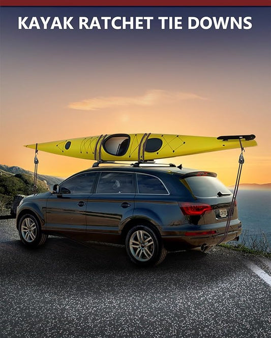 VIPARSPECTRA Ratchet Tie Down Straps, 1/4" Adjustable Rope Hangers [2 Pack, 12FT, 150 lbs/Pack], Heavy Duty Kayak Pulley System with Hooks for Garage Cargo Trucks Tents Grow Lights Various Lashing