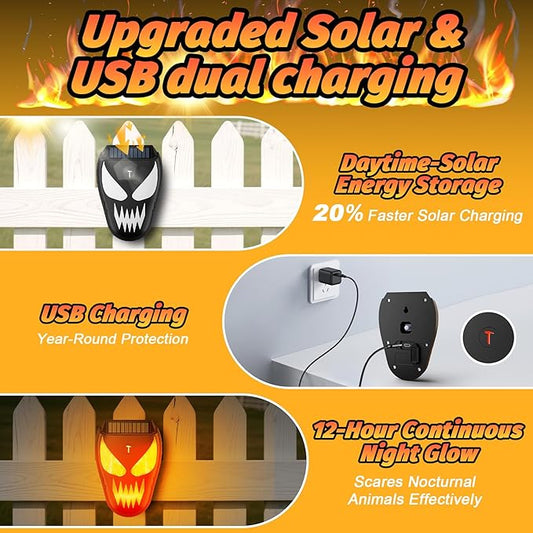 2 Pack Solar Racoon Repellent Outdoor Devices with Dynamic Flashing Lights, Effective Coyote, Raccoon, Skunk, Deer & Hawk Deterrent-Waterproof Predator Light for Chicken Coop, Garden, Farm