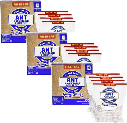 Fresh Cab Ants & Cockroaches Deterrent - Indoor Botanical Pest Control - Safe for Kids & Pets When Used as Directed - Made with Peppermint Essential Oil - 12-Pack (3)