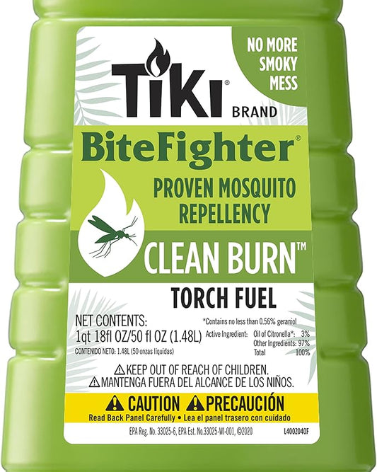 TIKI Clean Burn Mosquito Repellent Torch Fuel – 50 oz., Smokeless & Low-Soot Citronella, Mosquito Repellent, Plant-Based Formula for Outdoor, Patio, Garden & Backyard Torches