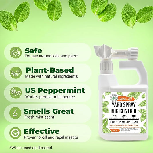 Mighty Mint Peppermint Oil Lawn & Yard Bug Control Spray – Natural Outdoor Pest Repellent for Fleas, Ticks, Mosquitoes, Ants, and More – Plant-Based, Extra-Strength Formula – 32 oz