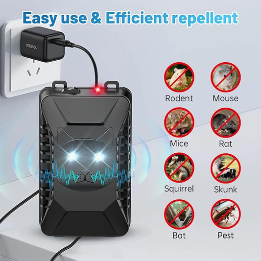 Ultrasonic Rodent Repellent, 2 Pack Plug-in Mouse Rat Pest Bat Squirrels Skunks Repellent for Car with Battery Powered Under Hood, Keep Mice Out of Cars Engines, Indoor, Outdoor, Garage, Hoom