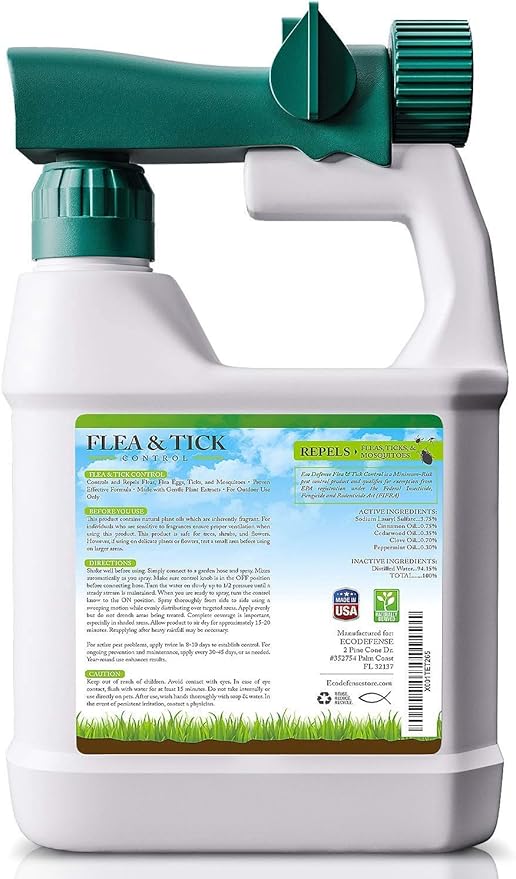 Eco Defense Flea, Tick, and Mosquito Spray for Yard and Perimeter - Safe Around Kids, Pets, Plants - Outdoor Barrier Control & Repellent - Ready-to-Spray Covers Up to 5,000 sq ft