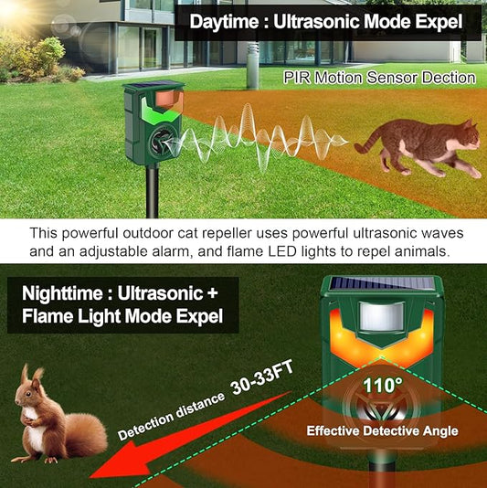Solar Animal Repeller, Ultrasonic Cat Repellent Outdoor with Motion Sensor & Flame Flashing Light, Deterrents Device for Raccoon Squirrel Skunk Deer Rabbit Rodent Dog Repellent for Yard,Farm,Garden