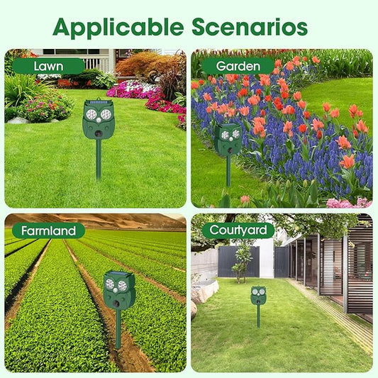 Animal Repellent Outdoor Solar Powered, Ultrasonic Deer Squirrel Skunk Rabbit Rodent Dog Deterrents Waterproof Animal Repeller, Pest Control for Gardens, Deter Mice, Snake, Squirrels, Rodents