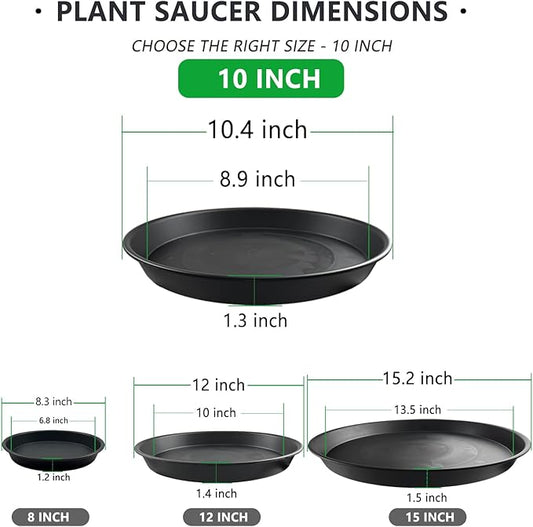 4 Pack Plant Saucer 8 inch, 10 12 14 17 inch, Plant Stand Plastic Plant Saucers for Indoors Outdoor, Heavy Duty Flower Planter Drip Trays for Pots, Pot Saucers for Plants, Grow Bags Saucers