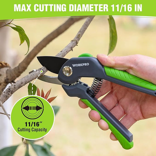 WORKPRO 8.5" Bypass Pruning Shear, Heavy Duty Garden Scissors & Clippers with Labor-Saving Design, Handheld Gardening Shears with Sharp Blade for Branch Trimming and Floral arrangement