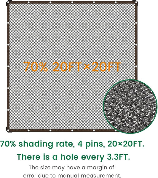 70% 20 X 20 FT Black Shade Cloth, Outdoor Sunblock Shade Cloth with Grommets, Durable Sun Shade Netting Shading Antifreezing for Patio, Garden, Plants Cover, Greenhouse, Barns, Dog Kennel