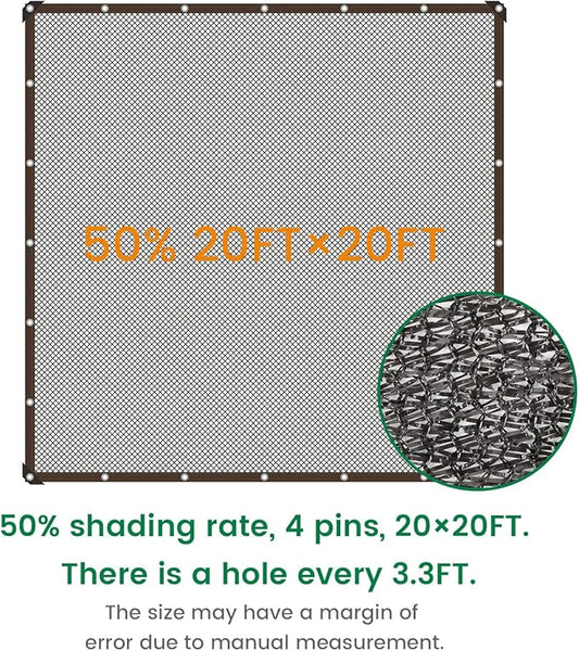 50% 20 X 20 FT Black Shade Cloth, Outdoor Woven Sun Shade with Grommets, Durable Breathable Netting Shading Antifreezing for Patio, Garden, DIY Home, Plants Cover, Greenhouse, Dog Kennel