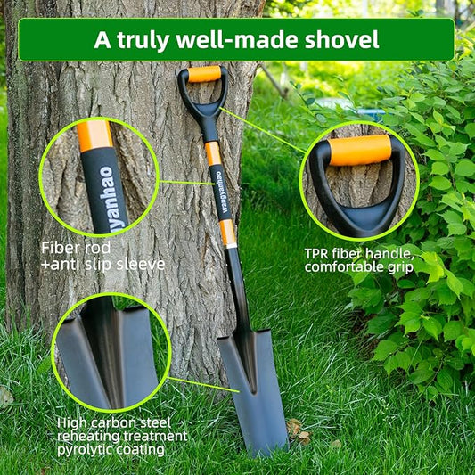 Shovel for Digging, Heavy Duty Gardening Shovel 57 Inch Straight Handle Round Blade with Non-Slip Tail Cover, Lawn and Yard Tools, Fiberglass Handle(Green)