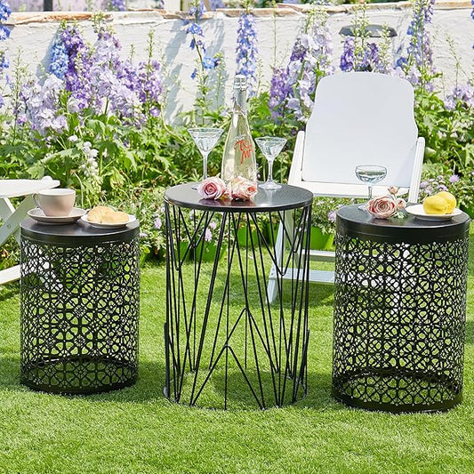 Y&M Set of 3 Patio Side Table for Living Room,Indoor End Tables for Bedroom, Outdoor Garden Stool with Heavy Duty Metal Frame Modern Industrial Decor - Black with Bronze