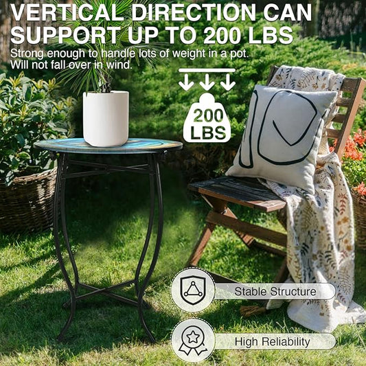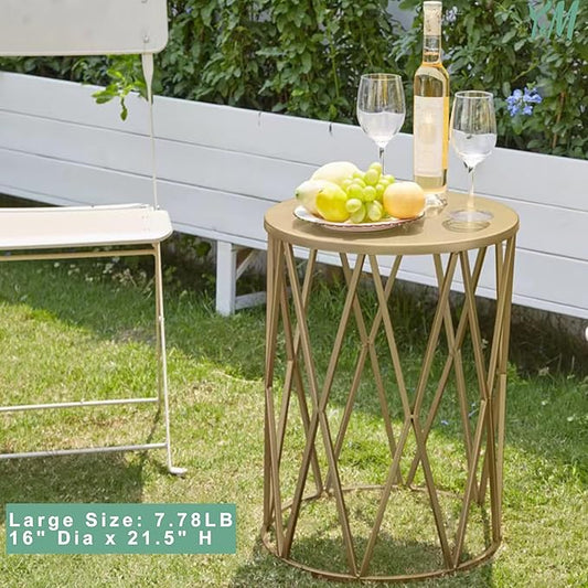 Patio Side Table, 14 Inch Weather Resistant Metal Side Table,Side Table for Patio Yard Porch Balcony Garden Bedside Plant Stand Indoor Outdoor ,Small Round Outdoor End Table