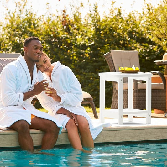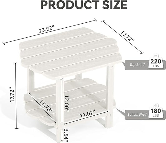 2-Tier Outdoor Side Table, 16" Adirondack Small Side Table All Weather Resistant, Patio End for Outside or Indoor, Patio, Yard, Pool, Porch, Garden, White