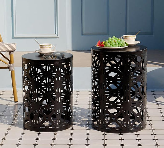 HFHOME Set of 3 Metal Outdoor Side Table, Nesting Round Coffee Table for Indoor Outdoor, Heavy Duty End Tables Plant Stand Living Room Garden Stool - Black