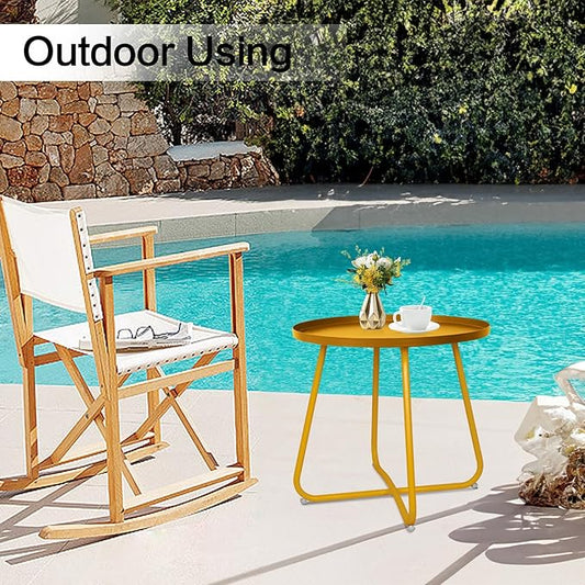 Babion Gold Outdoor Side Tables, Small Outdoor Table, Round Patio Side Table Steel, Small Accent End Table for Patio Yard Garden, Indoor & Outdoor
