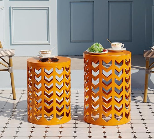 HFHOME Set of 3 Metal Side End Tables Nightstand, Nesting Round Coffee Table for Indoor Outdoor, Heavy Duty Metal Plant Stand Living Room Garden Stool - Orange