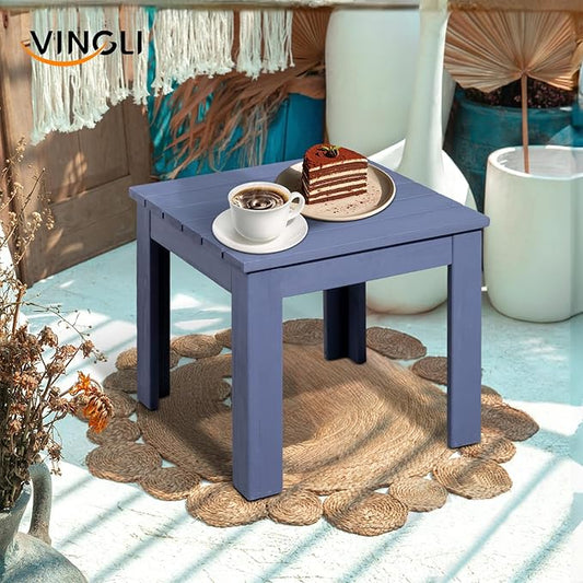 VINGLI Outdoor Adirondack Side Table, 18" Square Thick Wooden Coffee Table, Patio Side Table Conversation End Table for Patio Backyard, Garden, Poolside and Balcony (Navy Blue)