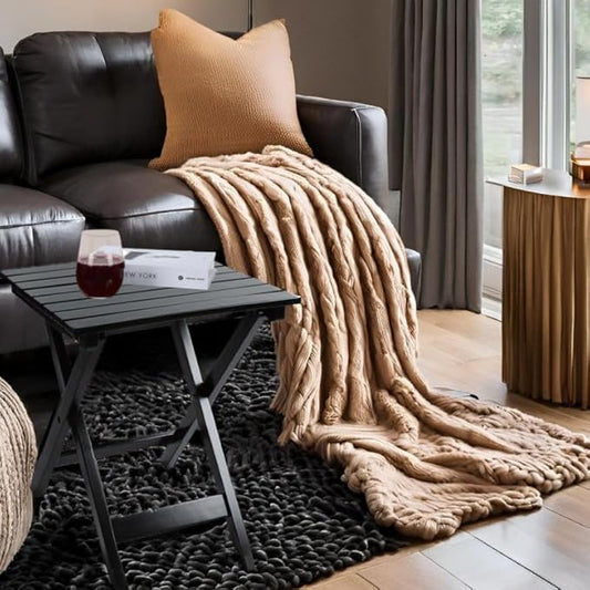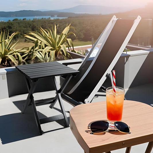 Small Wood End Square Table Outdoor Patio Side Folding Table Coffee Furniture for Living Room, Bedroom, Plant Stand, Camping Portable Black