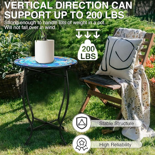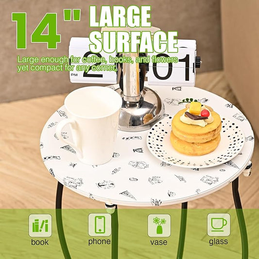 Patio Side Table, Versatile 14" Round Side Table Metal Stand for Balcony Yard Porch Bedside Rocking Chair and Pool Chair, Weather Resistant Accent Table for Indoor Outdoor Use, Easy Assembly