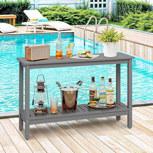 SUPER DEAL 48 inch Outdoor Console Table, 2-Tier Solid Wood Side Table Multifunctional Buffet Bar Storage Organizer with Adjustable Feet for All-Weather Indoor Outdoor Porch, Grey