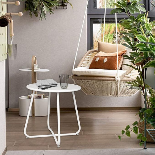 Babion White Round Patio Side Table, Small Accent End Table for Patio Yard Garden, Indoor & Outdoor