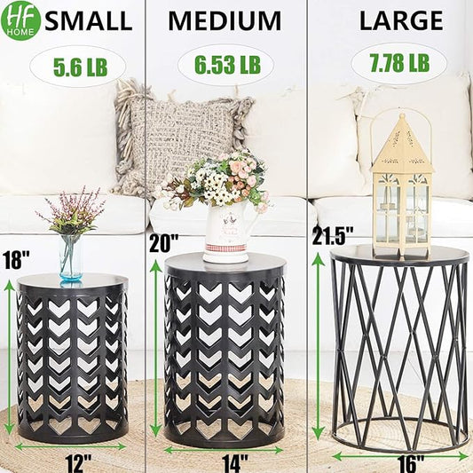 HFHOME Set of 3 Metal Side End Tables Nightstand, Nesting Round Coffee Table for Indoor Outdoor, Heavy Duty Metal Plant Stand Living Room Garden Stool - Black
