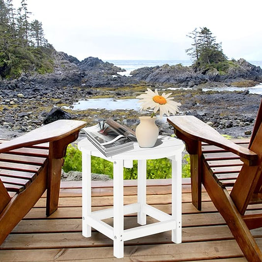LZRS Round Adirondack Patio Side Table End Table, Outdoor Side Tables for Patio, Backyard,Pool, Indoor Companion, Easy Maintenance & Weather Resistant(White)