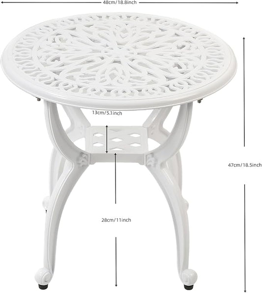KAILI Outdoor Cast Aluminum Side Table Patio Side Table Backyard, Pool, Indoor, Easy Maintenance and Weather Resistant Coffee Table Porch Table Bistro Table (18.5round-White)