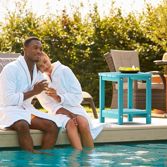2-Tier Outdoor Side Table, 16" Adirondack Small Side Table All Weather Resistant, Patio End for Outside or Indoor, Patio, Yard, Pool, Porch, Garden, Sky Blue