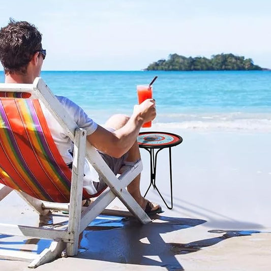Bean Green Patio Side Table, 18" Weatherproof Steel Outdoor Indoor Side Table for Garden, Balcony, Pool & Tailgate, Rust-Resistant Lightweight Portable Patio End Table
