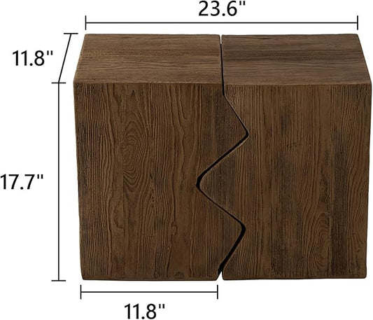 COSIEST Concrete Side Table, Set of 2 Rectangular Outdoor Side Tables, Decorative Garden Stools for Indoor Outdoor, Accent Table Patio Side Table Nesting End Table w Light Oak Colored Faux Wood