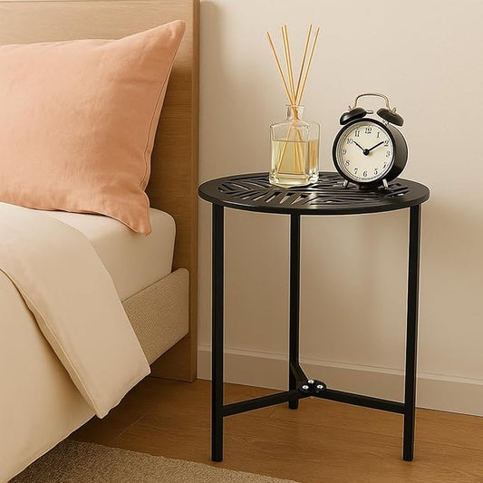 2 Packs 13" Metal Outdoor Side Tables Small Black Outside End Table for Patio Round Accent Corner Stand for Small Spaces Weather-Resistant Coffee Table for Balcony Porch Plant Stand, Pinna Form Leaf