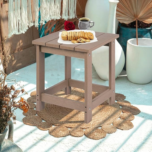 LZRS Adirondack Square Outdoor Side Table for Patio, Pool Composite Patio Table,HDPE End Tables for Backyard,Pool, Indoor Companion, Easy Maintenance & Weather Resistant(Weather Wood)